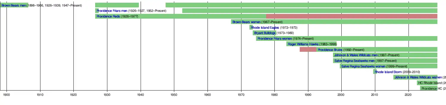| Roger Williams | Bristol | Men's | NCAA Division III | ECAC North/South/Central | 1983–1998 |