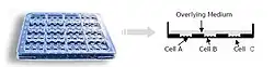 The IdMOC plate consists of multiple inner wells within a large interconnecting chamber. Multiple cell types are first individually seeded in the inner wells and, when required, are flooded with an overlying medium to facilitate well-to-well communication. Test material can be added to the overlying medium and both media and cells can be analyzed individually. Plating of hepatocytes with other organ-specific cells allows evaluation of drug metabolism and organotoxicity.[1]