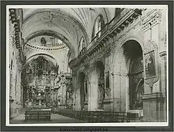 In the church, there are paintings and sculptures by Diego de la Puente, Marcos Zapata, and Cristo de Burgos.[11][12] The Jesuit college in Cusco was dedicated the Transfiguration of Christ, and the high altar features a painting of the Transfiguration attributed to the Jesuit Diego de la Puente.[13]
