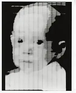 The first scanner to store its images digitally onto a computer was a drum scanner built in 1957 at the National Bureau of Standards (NBS, later NIST) by a team led by Russell A. Kirsch. It used a photomultiplier tube to detect light at a given point and produced an amplified signal that a computer could read and store into memory. The computer of choice at the time was the SEAC mainframe; the maximum horizontal resolution that the SEAC was capable of processing was 176 pixels. The first image ever scanned on this machine was a photograph of Kirsch's three-month-old son, Walden.[1][10]