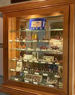 The soldiers generally range from Napoleonic to World War II, and include British military forces such as the 1st Foot Guards, Coldstream Guards from the Crimean War, and Camel Corps, dervishes, and Winston Churchill from the 1898 Battle of Omdurman.[6] New Zealand figurines include Māori in traditional dress, the New Zealand Girls' Khaki Brigade, and Armed Constabulary from 1870.[1][2] There are also Victorian civilian figurines including women, children, and domestic animals.