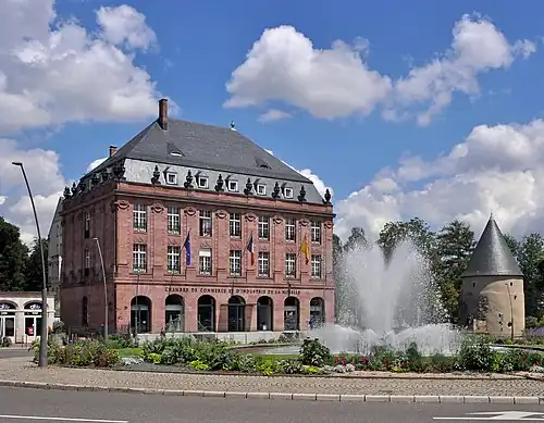 - The Chamber of Commerce and Industry of Moselle, no. 10-12 Avenue Foch, also constructed in pink sandstone as the Imperial Bank, a symbol of financial power, designed by Robert Curjel and Karl Moser, 1907