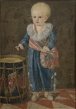 - ^ Genealogie ascendante jusqu'au quatrieme degre inclusivement de tous les Rois et Princes de maisons souveraines de l'Europe actuellement vivans [Genealogy up to the fourth degree inclusive of all the Kings and Princes of sovereign houses of Europe currently living] (in French). Bourdeaux: Frederic Guillaume Birnstiel. 1768. pp. 9, 15.