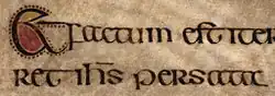 - Insular half-uncial, or "Irish majuscule": the most formal; became reserved for rubrics (highlighted directions) and other displays after the 9th century.[2]