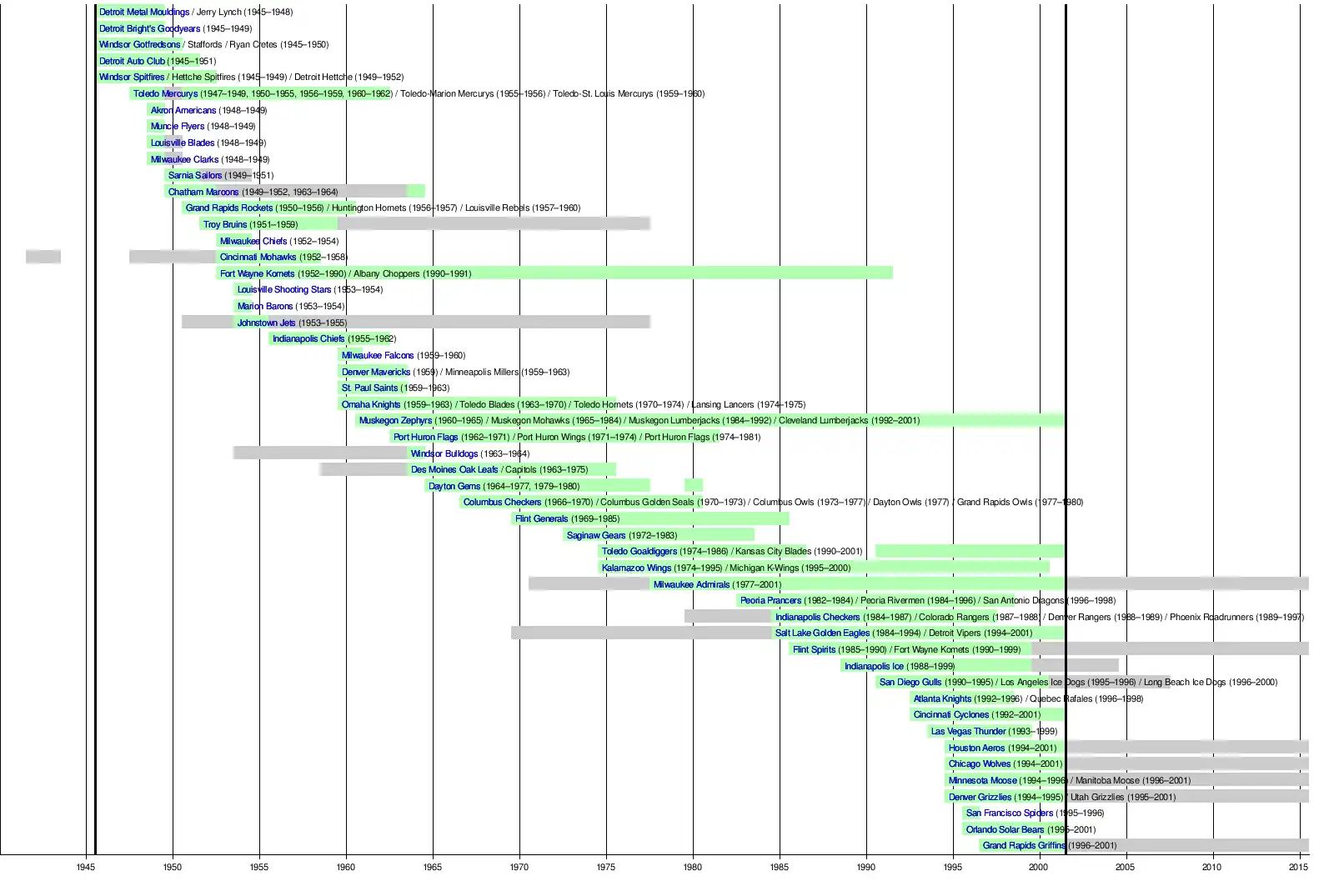 | 1994 | Chicago Wolves | 1994–2001 | 7 | Transferred to AHL in 2001. |