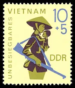 East German authorities had also begun providing material and technical aid to help develop and modernise the North Vietnamese economy and military.[23] In addition, East Germany had also vigorously denounced the US war effort, and had reaped significant international and diplomatic standing as a result of its anti-war campaigns.[24]