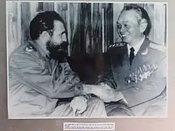 The contributions to North Vietnam by the Republic of Cuba under Fidel Castro have been recognized several times by representatives of the Democratic Republic of Vietnam.[18] Castro mentioned in his discourses the Batallón Girón (Giron Battalion) as comprising the Cuban contingent that served as military advisors during the war.[19][20] In this battalion, the Cubans were aided by Nguyễn Thị Định, founding member of the Viet Cong, who later became the first female major general in the PAVN.[21]