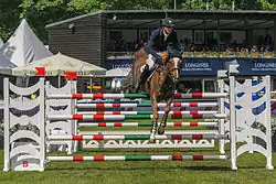The jumping competition Großer Preis von Wiesbaden has been held from 1958 and is the most important show jumping event with the highest prize money. In the years 2012 and 2013, it was named Preis der Landeshauptstadt Wiesbaden. It is regularly held as the conclusion of the event. It was in counted towards the Riders Tour from 2001 to 2018. In the first year, the prize money was 10.000 DM, and in 2018 it was 150,000 Euro.[2]