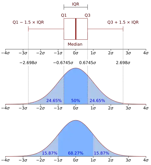 | Normal | μ | 2 Φ−1(0.75)σ ≈ 1.349σ ≈ (27/20)σ |