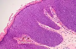 - Image title and optimization: Mikael Häggström, M.D. - ^ Shimizu, Michio; Nagata, Koji; Yamaguchi, Hiroshi; Kita, Hiroto (February 2009). "Squamous intraepithelial neoplasia of the esophagus: past, present, and future". Journal of Gastroenterology. 44 (2): 103–112. doi:10.1007/s00535-008-2298-y. ISSN 0944-1174. PMID 19214671.