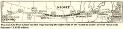 The first full-transcontinental air mail flights began on September 8, 1920 – with Iowa City being the one stop for fuel between Chicago and Omaha. These flights were only attempted in daylight hours, however, and provided little advantage over the train-delivered mail. Still, the concept of delivering mail by air was proven by these early flights. Five months later, on February 22 & 23, 1921, Smith Field – the Iowa City airport – was designated as a fuel stop on the first transcontinental day/night air mail attempt. This flight tested the feasibility of flying the mail around the clock, in all weather conditions – and very nearly ended up in disaster.