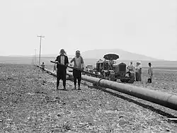The pipeline was built in 2 years between the summer of 1932 and 1934, oil first arrived in Tripoli on July 14, 1934, and in Haifa on October 14, 1934 (seven years to the day after oil was first struck at the Baba Gurgur No. 1 well). Only in 1936, nine years after the discovery, did IPC export oil at the full capacity of the system.[43]