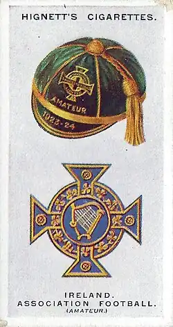 The Ireland national football team (Irish: Foireann peile náisiúnta na hÉireann) represented the island of Ireland in association football from 1882 until 1950. It was organised by the Irish Football Association (IFA), and is the fourth oldest international team in the world. It mainly played in the British Home Championship against England, Scotland and Wales. Though often vying with Wales to avoid the wooden spoon, Ireland won the Championship in 1914, and shared it with England and Scotland in 1903.