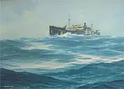 Two Limerick Steamship Company ships, Lanahrone and Clonlara were part of the "nightmare convoy"[133] OG 71, which left Liverpool on 13 August 1941.[134] As merchant ships of a neutral country the Limerick ships had no blackout facilities, and the Master of the British Convoy Commodore's ship, the liner Aguila, objected that this would make the convoy visible to the enemy at night. In an apparently vain attempt to make them less visible, the vice admiral who was Convoy Commodore positioned the two Irish ships in the centre of the convoy.[135] On 19 August in separate attacks the Norwegian destroyer HNoMS Bath was drawn away from the convoy and sunk by U-204,[136] and three minutes later U-559 sank the British merchant ship Alva.[137][138] Clonlara rescued 13 survivors from Alva.[139] Two hours later U-201 sank the Commodore ship Aguila[140] and the British cargo ship Ciscar.[141] Two days later U-564 sank Clonlara.[142] The Flower-class corvette HMS Campion rescued 13 survivors (eight from Clonlara, five from Alva). Eight merchant ships,[137] two naval escorts and over 400 lives were lost.[note 30]