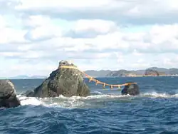 Meoto Iwa, the "wedded rocks" at high tide