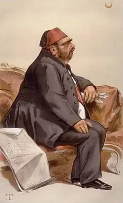 Isma'il Pasha (Arabic: إسماعيل باشا Ismā‘īl Bāshā; 25 November 1830[5] or 31 December 1830 – 2 March 1895), also known as Ismail the Magnificent, was the Khedive of Egypt and ruler of Sudan from 1863 to 1879, when he was removed at the behest of Great Britain and France. Sharing the ambitious outlook of his grandfather, Muhammad Ali Pasha, he greatly modernized Egypt and Sudan during his reign, investing heavily in industrial and economic development, urbanization, and the expansion of the country's boundaries in Africa.