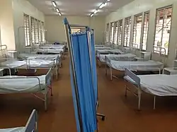 Isolation is most commonly used when a patient is known to have a contagious (transmissible from person-to-person) viral or bacterial illness.[1] Special equipment is used in the management of patients in the various forms of isolation. These most commonly include items of personal protective equipment (gowns, masks, and gloves) and engineering controls (positive pressure rooms, negative pressure rooms, laminar air flow equipment, and various mechanical and structural barriers).[2] Dedicated isolation wards may be pre-built into hospitals, or isolation units may be temporarily designated in facilities in the midst of an epidemic emergency.