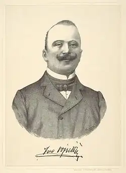 Vojnović entered literature in 1880 when August Šenoa's Vienac published his short story "Geranijum" under the pseudonym Sergej P. Matica hrvatska under the leadership of Ivan Kukuljević Sakcinski published his novels Perom i olovkom in (1884) and Ksanta (1888) under the same pseudonym.[7][8] Vojnović was the author of dramas of naturalistic cut, inspired by the literary and patriotic traditions of the Republic of Dubrovnik. He is known for his Dubrovačka trilogija (Zagreb, 1902), which was later translated into English and published in Graz in 1922 under the title of "Dubrovnik Trilogy". The book describes the fall of the Dubrovnik Republic. His other works include: Death of the Mother of the Jugović (1906) and Resurrection of Lazarus (1913). He is the author of psychological dramas such as: Lady of the Sunflower (1912; filmed in 1918 by Michael Curtiz), and of pieces such as: Dance of Masks in the Attic (1922), which reflect the influence of Luigi Pirandello on Vojnović.[9] His play Equinox (Ekvinocij, 1898) was in 1942 put to opera with the same title by the Slovene composer Marjan Kozina.