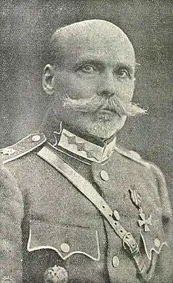 In 1914, he was promoted commander of the 13th Reserve Battalion, but in December he became the commander of the 17th Infantry Regiment.[4] For merit on the battlefield, he received the Cross of St. George (IV class) and Sword of St. George.[3] From 1916, he commanded a brigade in the 15th Siberian Division. In 1917, he was promoted to the rank of general; later that year, he was appointed to the post of commander of the 15th Riflemen Division.[4]