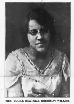 Lucille Robinson Wilkins, in her marriage announcement on December 2, 1922[16]