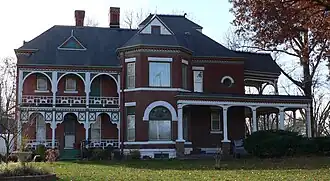 The J. M. Burk House is a historic house in Geneva, Nebraska. It was built in 1891 for J. M. Burk, a hardware store owner, and designed in Queen Anne style (one aspect of which being its irregular massing).[2] In 1916, it was acquired by Walferd C. Peterson who lived here with his wife Rosalie and their nine children.[2] The house has been listed on the National Register of Historic Places since February 23, 2001.[1]
