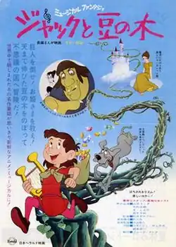 Jack and the Beanstalk (ジャックと豆の木, Jakku to Mame no Ki) is a 1974 Japanese animated feature film produced by Group TAC (as its debut film), distributed by Nippon Herald Films and directed by Gisaburō Sugii. Styled after classical Western animation, it is a musical fantasy based on the fairy-tale of the same name with the screenplay by Shūji Hirami, music organization by Yū Aku and songs and score composed and arranged by Takashi Miki with Shun'ichi Tokura and Tadao Inōe.[3] It was released in Japan on July 20, 1974[2] and in the United States by Columbia Pictures in 1976.[4]