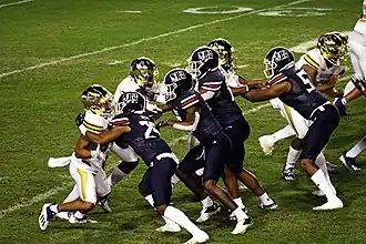 Jackson State University's athletic teams participate in the Southwestern Athletic Conference (SWAC) which is a part of the NCAA Division I. Football participates in the Football Championship Subdivision (formerly Division I-AA). Jackson State University's colors are navy blue and white. The nickname of the men's teams is the Tiger; the nickname of the women's teams is the Lady Tigers.