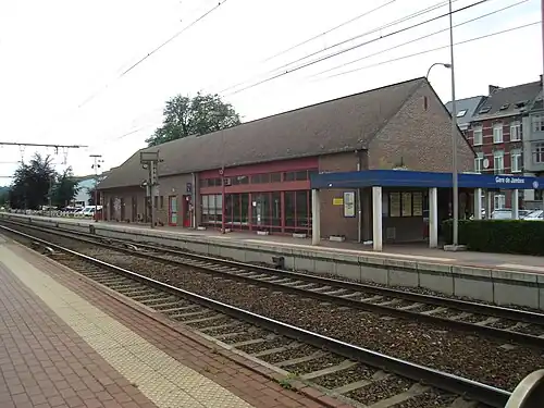 Jambes railway station (French: Gare de Jambes; Dutch: Station Jambes)[a] is a railway station in Jambes, Namur, Belgium. The station is operated by the National Railway Company of Belgium (SNCB/NMBS).[1] It should not be confused with Jambes-East railway station, just a few minutes' walk to the east, which is on railway line 162.
