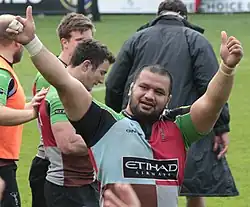 James Johnston (born 6 March 1986) is a New Zealand rugby union player of Samoan descent who currently plays for Ampthill RUFC (2023-2024) and has represented Samoa. He has played club rugby for Wasps, Harlequins and Saracens in the then Aviva Premiership. He plays at tighthead prop. He has represented Samoa. Johnston lived in Surbiton whilst playing for Harlequins, before making the move to St Albans upon signing for Saracens in 2013.[1] He started for Harlequins in their 2011–12 Premiership final victory over Leicester Tigers.[2]