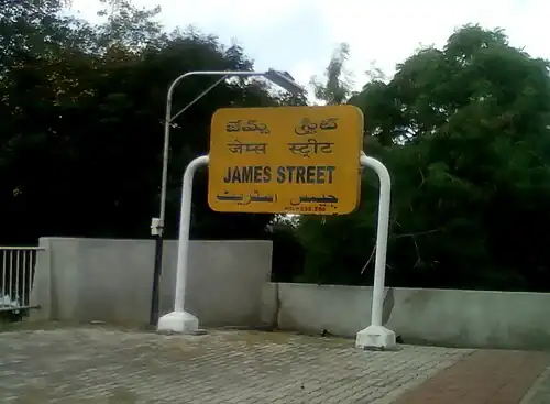 James Street railway station is a railway station in Secunderabad, Telangana. The station was built in 1874 and was the second station after Secunderabad station on the Hyderabad–Wadi sector by Nizam State Railways.[2] The station derives its name from erstwhile James Street located adjacent to this station. After India's independence, this street was later renamed as Mahatma Gandhi Road. The railways station was amongst the first railway stations to have been built as a self-financed first railway line from Secunderabad to Wadi by the sixth Nizam Mir Mahbub Ali Khan Bahadur. This railway line later became part of the Nizam's Guaranteed State Railway. In 1951, James Town railway station and the line were made a part of Central Railway zone.[3]