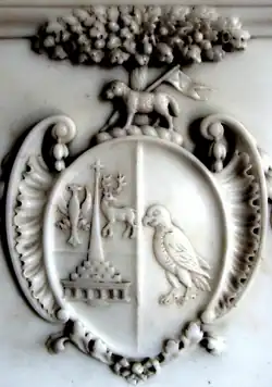 He died in 1782 and is commemorated by a mural monument in Teigngrace Church (see photo, right), as is his wife.[14] The church was also rebuilt in 1787 by three of his sons in memory of their parents.[15] Pevsner thought highly of this family stating: "The Templers were people of taste, as is clear from the building and their monuments".[16]