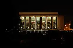 Janáček Theatre (Czech: Janáčkovo divadlo) is an opera house in the city of Brno, Czech Republic. It is the largest of the three theatres serving the National Theatre Brno ("NdB") opera and ballet company, the others being the Mahen and the Reduta. It was built starting in 1960 after decades of delay and finally opened in October 1965,[1] since when it has premiered some twenty operas and ballets.[2] A major renovation was completed in 2018. The building's façade is north-facing, away from the city center and towards the nearby house of its namesake composer, who is grandly memorialized on the adjacent landscaped green.