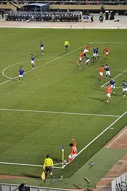 ![]() Japan and South Korea contesting the 2010 East Asian Football Championship | |
