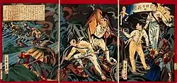 The Japanese army split into three forces and headed in different directions, the south, north, and central routes. The south route army was ambushed by the Kuskus tribe and lost three soldiers. A counterattack defeated the Kuskus fighters and the Japanese burned their villages. The central route was attacked by Mudan and two or three soldiers were wounded. The Japanese burned their villages. The north route attacked the Nünai village. On 3 June, they burned all the villages that had been occupied. On 1 July, the new leader of the Mudan tribe and the chief of Kuskus admitted defeat and promised not to harm shipwrecked castaways.[21] Surrendered indigenous people were given Japanese flags to fly over their villages. They were viewed as a symbol of peace with Japan and protection from rival tribes by the indigenous people. To the Japanese, it was a symbol of jurisdiction over the indigenous Taiwanese.[22] Chinese forces arrived on 17 June and a report by Fujian Administration Commissioner reported that all 56 representatives of the tribes except for Mudan, Zhongshe and Linai, who were not present due to fleeing from the Japanese, complained about Japanese bullying.[23]