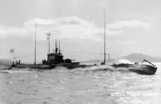 I-53, later I-153 (伊号第五三潜水艦, I-gō Dai-Hyaku-gojūsan sensuikan), later I-153 , was an Imperial Japanese Navy Kaidai-class cruiser submarine of the KD3A sub-class commissioned in 1927. During World War II, she supported Japanese forces during the invasion of British Malaya in December 1941 and the Dutch East Indies campaign in early 1942. She served as a training submarine until she was hulked in January 1944. She surrendered to the Allies at the end of the war in 1945. She was either scuttled in 1946 or scrapped in 1948.