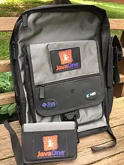 JavaOne-branded backpack and case, given out at JavaOne 2001
