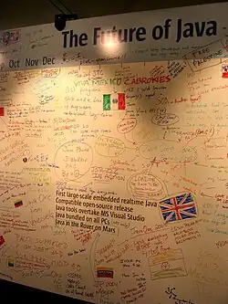 Attendees at the 2004 JavaOne conference described their vision of the future of Java on a whiteboard.