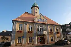 The town hall on the town square is a pseudo-Mannerist house from the early 20th century. Other valuable buildings in the town centre are burgher houses from the 19th century with medieval cores, mostly in Mannerist and Empire styles.[11]
