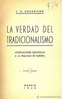 - ^ Jesús Evaristo Casariego, La Verdad del tradicionalismo: aportaciones españolas a la realidad de Europa, Madrid 1940, p. v