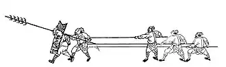 - 2 men with multiple-tip spears (lang xian shou 狼筅手)