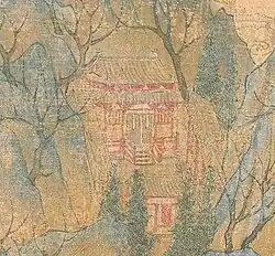 Court patronage for jiehua peaked in the Northern Song period, resulting in the creation of some of the greatest jiehua masterpieces of all time, such as Along the River During Qingming Festival 《清明上河图》.[28] Historian Wen Chien-Cheng suggests that the renaissance of jiehua painting in the Northern Song Dynasty may be attributed to the rising prominence of landscape paintings and appreciation of realism.[28][29] The surviving jiehua works from the Southern Song period typically portray close-ups of structures which were “often juxtaposed with voids that suggest distance and atmospheric mood," an adoption of Southern literati landscape features.[30]