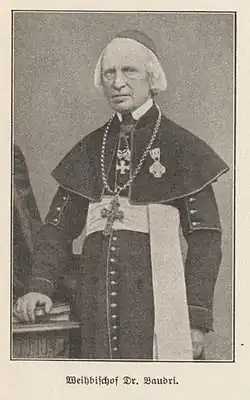 Johann Anton Friedrich Baudri (b. 20 February 1804 in Elberfeld (today part of Wuppertal), d. 29 Juni 1893 in Cologne) was a German Roman Catholic priest, the Vicar General of the Roman Catholic Archdiocese of Cologne and the auxiliary bishop of Cologne.