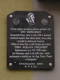 Johannes Montanus came from Striegau in Lower Silesia (now Strzegom, Poland). In 1563 he announced the discovery of terra sigillata, a medicinal clay, in the abandoned mines at Góra Bazaltowa; this variant is also called terra silesiaca. He subsequently found work as doctor of the Holy Roman Emperor Rudolf II in Prague. In 1587, he received an imperial privilege allowing him to mine and sell terra sigillata from Strzegom. He was also an important early collector of Paracelsian texts, some of which were used by Johannes Huser in his editions of Paracelsus' works.[1]