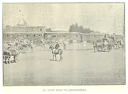 By 1888, an early railway line from Boksburg to Braamfontein would pass a tin shed at a station spot that would be called Park, named after the Krugers Park just north of the stop.[4]: 6 Krugers Park would later be known as Old Wanderers. By 1889/1890 the stop was now called Park Halt on the Boksburg/Braamfontein line.[4]: 6 The line was run by the De Nederlandsche Zuid-Afrikaansche Spoorweg Maatschappy (NZASM) and was known as the Rand Steam Tram which transported coal from the collieries at Boksburg to the yards at Braamfontein.[5]: 153 It would later be extended westwards to Krugersdorp and eastwards from Boksburg to Springs.[5]: 153