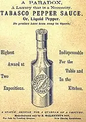 Tabasco brand pepper sauce advertisement from John Avery McIlhenny's tenure as head of McIlhenny Company, circa 1895