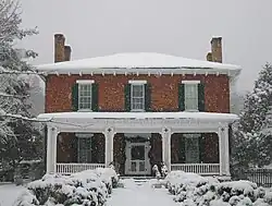 White and his family resided in a large brick mansion located along East Main Street (Northwestern Turnpike) which was later known as "Liberty Hall". Due to his upbringing in an affluent family, White was a person of means from a young age, and in his early adulthood he was able to construct a "large brick mansion" at this location. His original residence was destroyed by fire in 1857, and White replaced it with a more modest brick edifice where he resided until his departure from Romney in 1861 during the American Civil War. White's home was a "seat of true old Virginia hospitality" and it was frequented by all socio-cultural strata of Hampshire County and the greater Valley of Virginia region.[1][2]