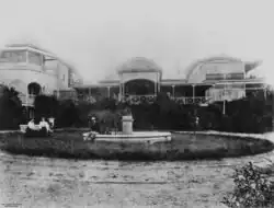 In 1884, Cameron built the iconic Doobawah on a 10-acre parcel of Ormiston land adjacent to Moreton Bay and Raby Bay (now located at 26 Empire Vista),[5] with a view to a retirement spent fishing. Doobawah, the Aboriginal name for Raby Bay, also meant "a vast expanse of water".[6] The property, a former cane plantation, was bounded by Wellington and Eckersley Streets, and fringed by Moreton Bay to the east. Large wings were added to the house, and land to the property, about a year later.[7]