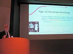 Donoghue is a founder of the discipline of neuroprosthetics and coordinated the team that developed the brain–computer interface 'BrainGate' to restore movement for people with paralysis.[6] He was a co-founder of an early neurotechnology startup company, Cyberkinetics.