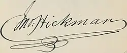 Hickman died on March 23, 1875, at his home in West Chester. He was interred in Oaklands Cemetery.[1][2]