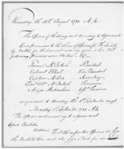 - ^ Metcalf, Bryce (1938). Original Members and Other Officers Eligible to the Society of the Cincinnati, 1783-1938: With the Institution, Rules of Admission, and Lists of the Officers of the General and State Societies Strasburg, VA: Shenandoah Publishing House, Inc., p. 27 and 261.